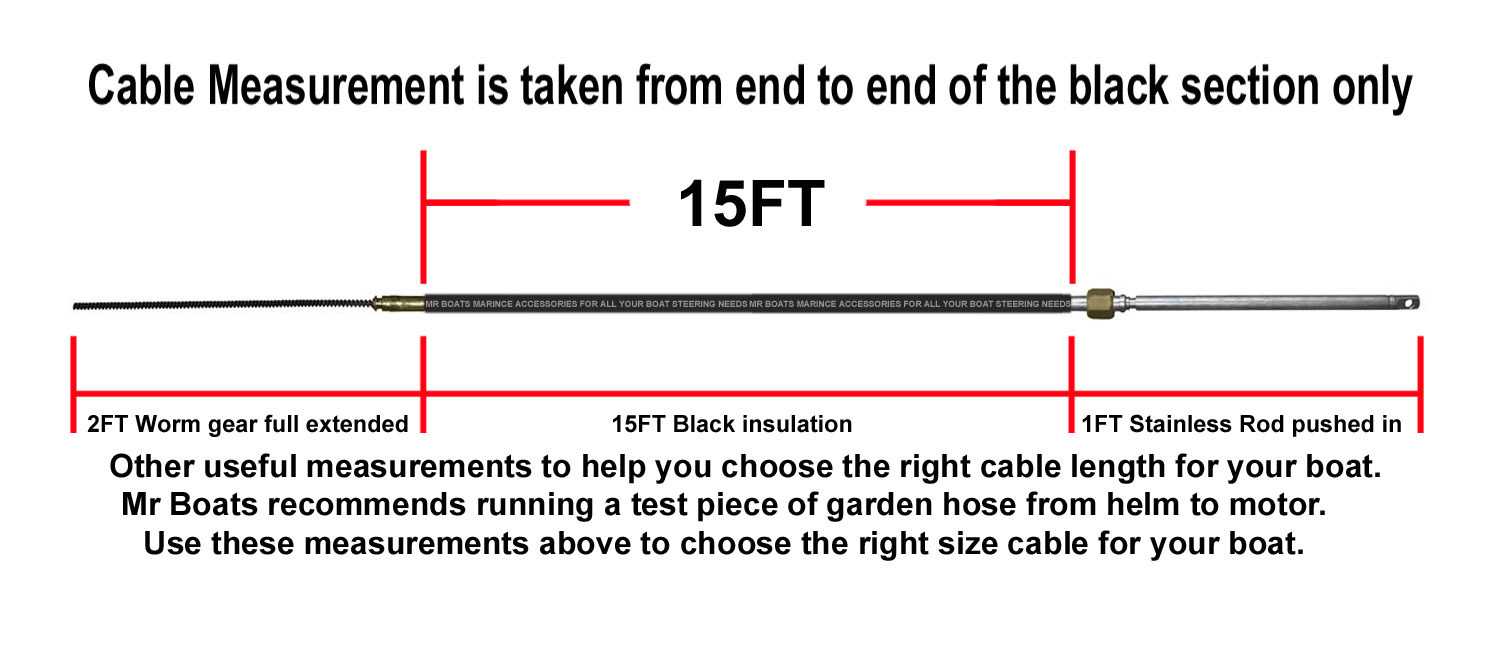 To measure the correct length cable for your boat, please use the measuring template attached in the photos. Do not use your existing cable length as all manufactures use different measuring points & technics. If for some reason you have made a mistake in measuring your cable and need to swap it over. We are happy to do this as long as the cable comes back to us in the same condition (No marks no grease in original packaging) as we sent it to you. Once getting the cable back we'll inspect it and resend the cable length you require. Customer has to pay for all frieght costs, plus any different in cable costs.